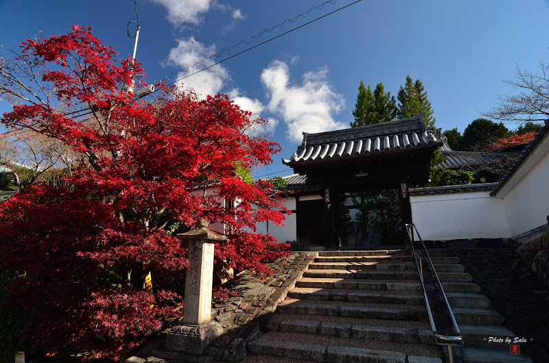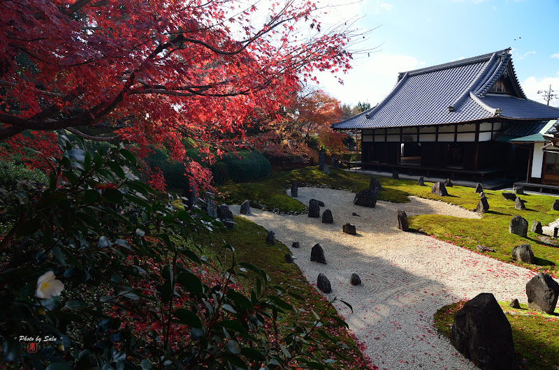 因落下的紅葉掉落在青綠青苔上而有「虹の苔寺」之別名